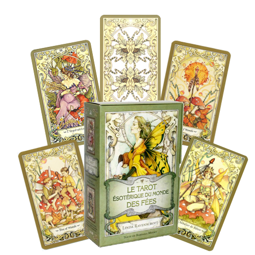 Sur ces aquarelles dessinées par une artiste du nom de Linda Ravenscroft, figurent elfes, nymphes et fées qui illustrent avec justesse les messages symboliques magiques délivrés par les arcanes.
